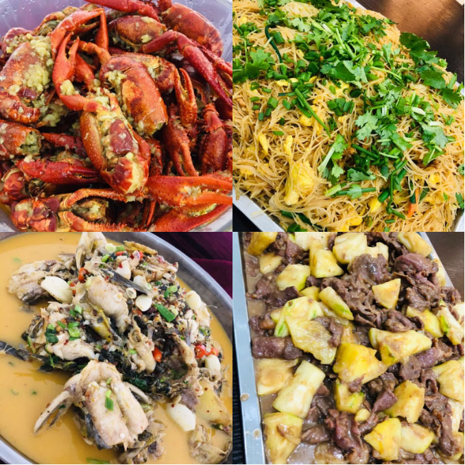 壽司船、麻辣小龍蝦、時(shí)令水果、炒粉...