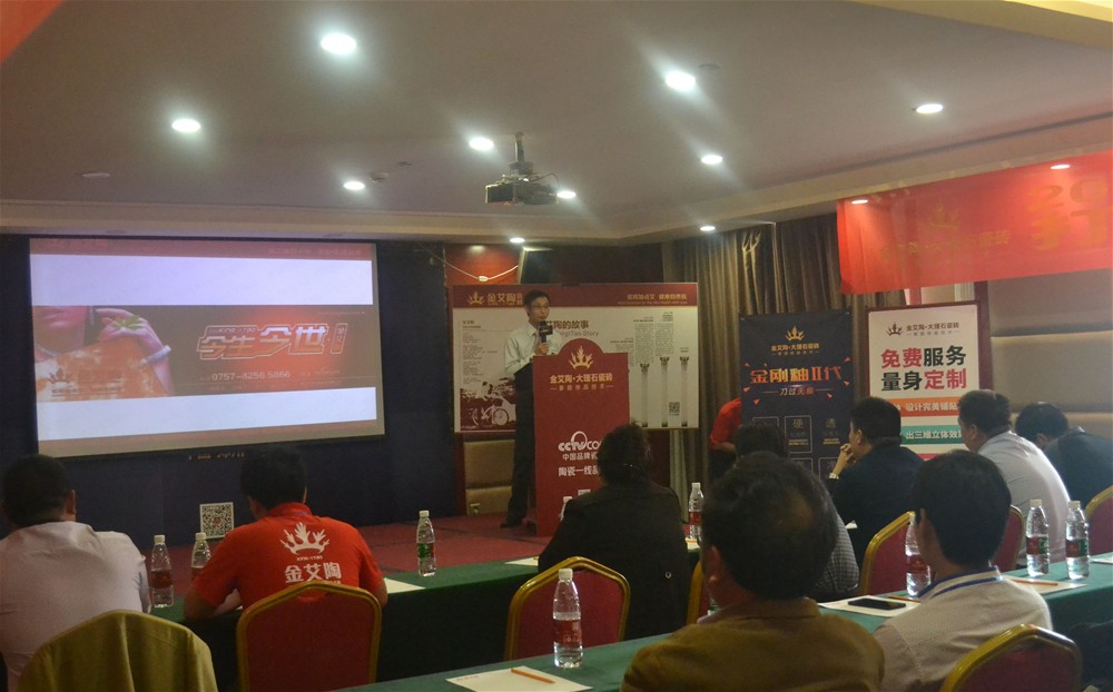 金艾陶營銷總經(jīng)理羅勝向經(jīng)銷商介紹新品
