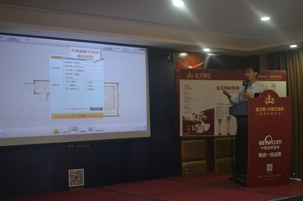 金艾陶3D設(shè)計(jì)系統(tǒng)培訓(xùn)導(dǎo)師陳嘉輝為現(xiàn)場經(jīng)銷商介紹金艾陶3D設(shè)計(jì)系統(tǒng)