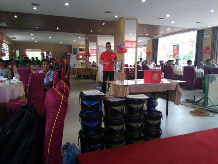 據悉,本次推介會主辦方井岡山金艾陶瓷磚專賣店老板尹慧華尹總,是2014年才轉行做陶瓷的,他的眼光高遠,對于金艾陶瓷磚產品的宣傳、推廣有自己的一套方式。他不僅僅是經營瓷磚,還兼顧著裝修所需要的耗材,如填縫劑、膠水等等,裝修耗材品種配套齊全從而得到客戶的青睞!