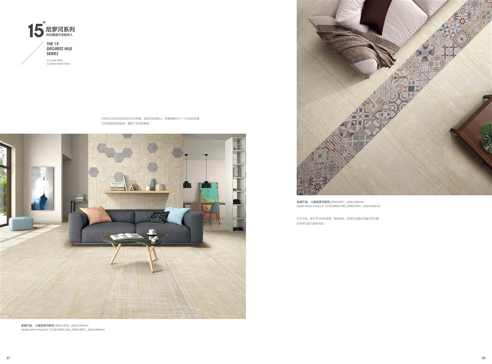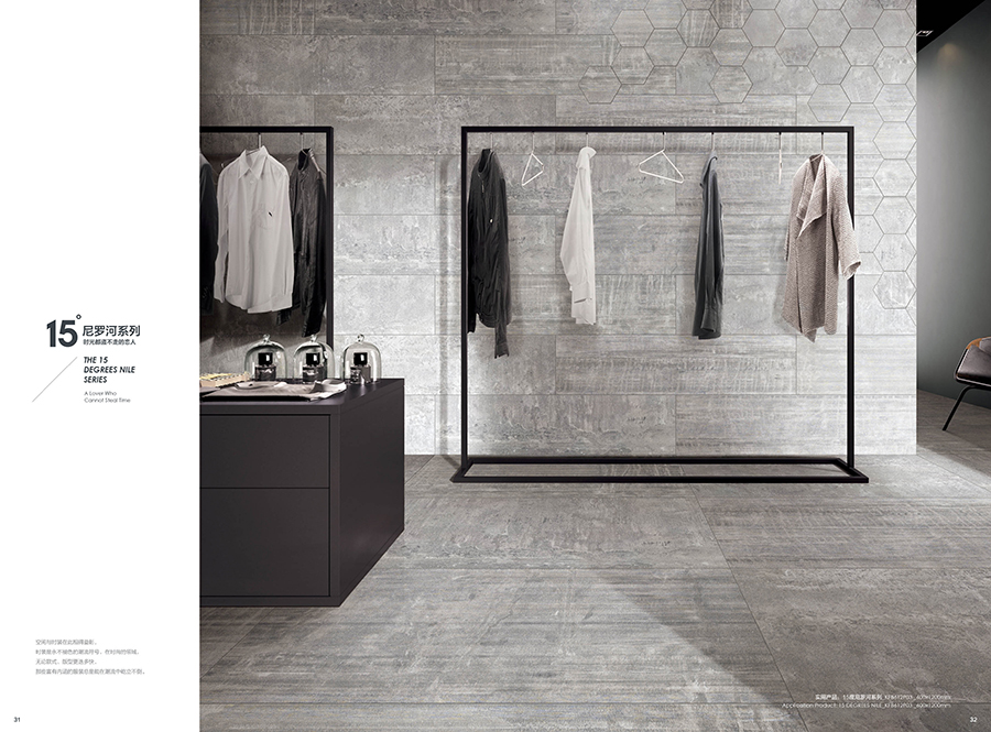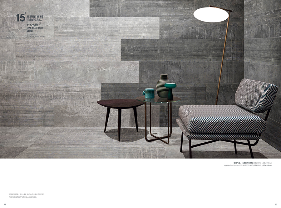 15度尼羅河,如夜幕下的尼羅河流,一路向前,偶爾也隨性地流淌,以自己的風華凝聚時代的靈魂給予世人。追溯千百年前的智慧,設計師將尼羅河的蜿蜒流長帶入產品的抽象表現中,在傳承中沉浸強烈的自然氣息,風格獨特而彰顯藝術的閑逸,傳承精髓而散發著浪漫風情,無論是大面積鋪貼,還是與其他元素混搭, 都在相得益彰中凸顯濃郁的文化韻味。