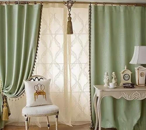 比如下圖就是根據(jù)天花板的顏色,然后選擇了白色的窗簾,在綠色的墻面中顯得