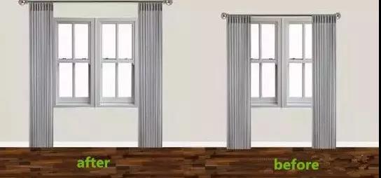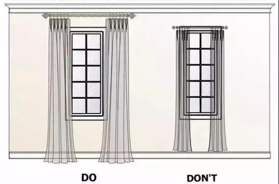 ,就像穿大長(zhǎng)裙能顯高是一個(gè)道理,從高于窗框上沿的13~18cm處開始懸掛效果